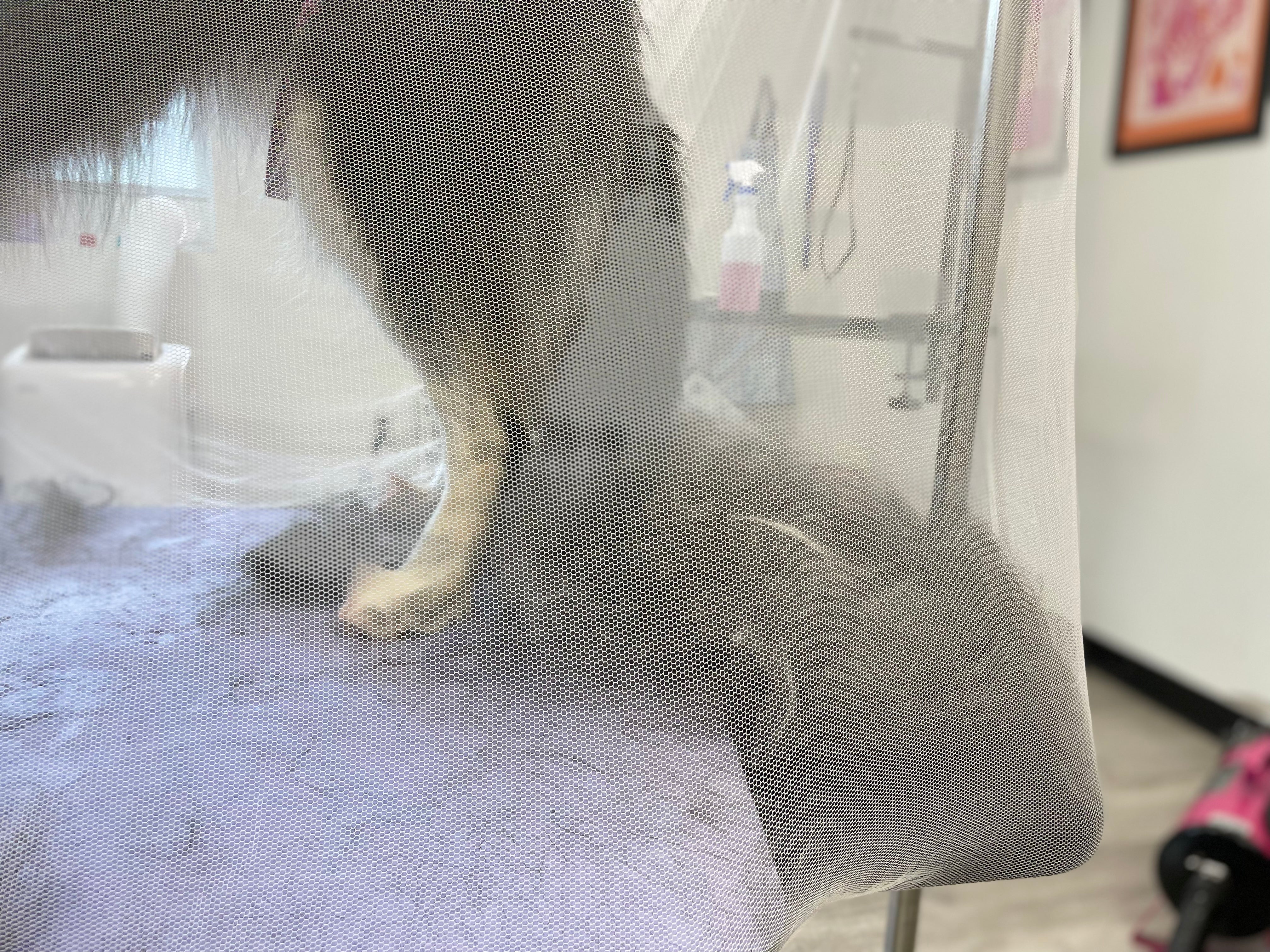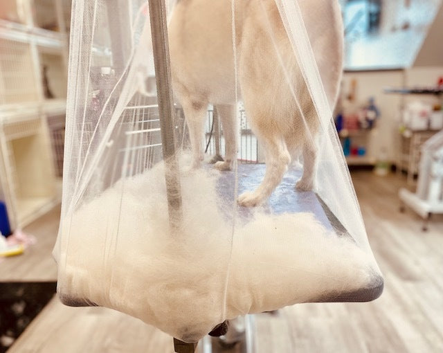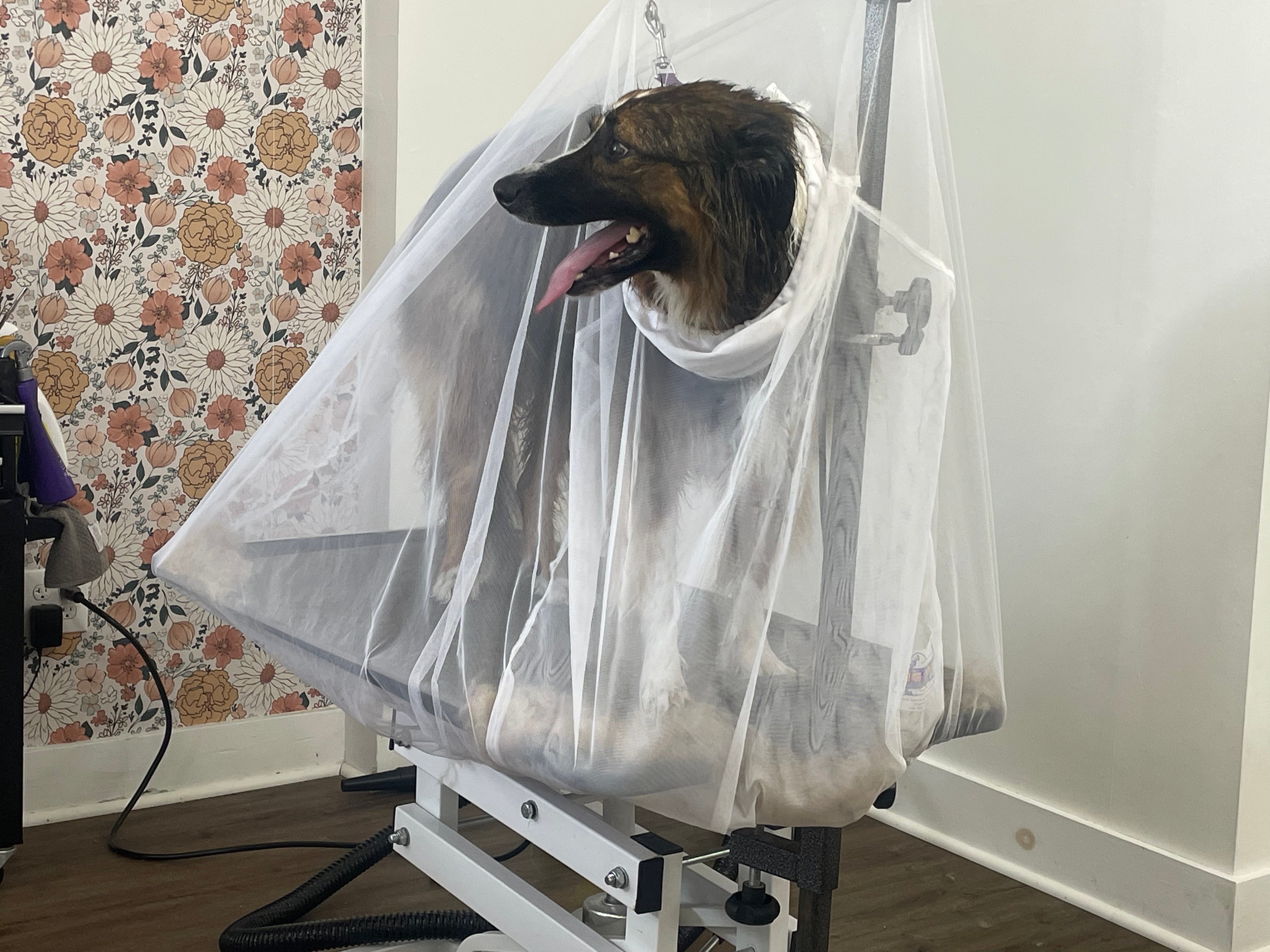 Big Hair Don't Care? You won't anymore! If you have ever experienced blow out season at a dog grooming salon you know how messy things can become. Until now! Welcome The BIG HAIR net into your salon to capture all the flying fur that fills your eyes, equipment filters, work stations, coffees and tool chests. Our incredibly simple tool is a net that quickly slips over your grooming arm/table and comfortably secures
